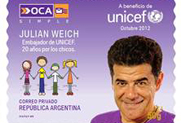 Por noveno año consecutivo, se lanza la campaña solidaria que apunta a recaudar fondos para colaborar con el trabajo de UNICEF. Julián Weich es el motivo de la estampilla 2012, en reconocimiento a sus 20 años como Embajador de Buena Voluntad.