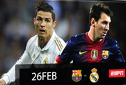 El próximo martes 26 de febrero, las pantallas de ESPN, ESPN3 y ESPNPlay.com pondrán al aire el partido de vuelta de la Copa del Rey entre Barcelona y Real Madrid. En la ida, jugada en el Santiago Bernabeú, empataron 1 a 1.
